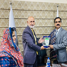 Director General, Sindh Food Authority, Government of Sindh, Pakistan Mr. Agha Fakhar Hussain visited National Centre of Excellence in Analytical Chemistry, University of Sindh, Jamshoro on 8th June 2023. He visited the laboratories and talked with research scholars about their research projects. Professor, Dr. Najma Memon, briefed Mr. Agha Fakhar Hussain the vision, goals and past 10 years progress of the Centre. Director NCEAC, Prof. Dr. Syed Tufail Hussain Shah presented him a Souvenir and Ajrak.